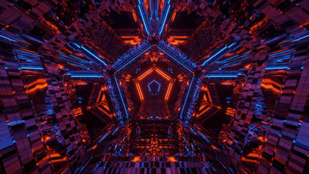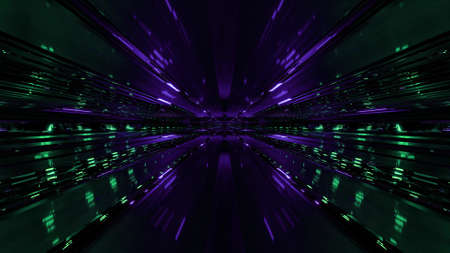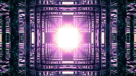 3D illustration of 4K UHD sci fi passage with symmetric neon rays