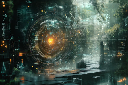 futuristic industrial abstract mechanism reactor close-up. Generative AI.
