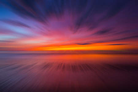 Abstract colorful cloud and sky sunset seascape. Blurred panning motion.