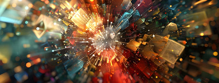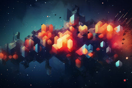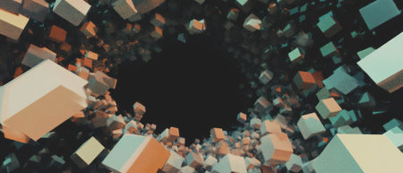 A visually striking abstract image featuring colorful 3D cubes and particles swirling in a dynamic space, ideal for creative projects and digital art inspirations.