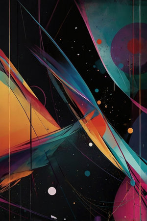An abstract poster illustration with a black background designed for smartphone wallpaper, featuring modern and artistic elements to create a visually striking and unique display