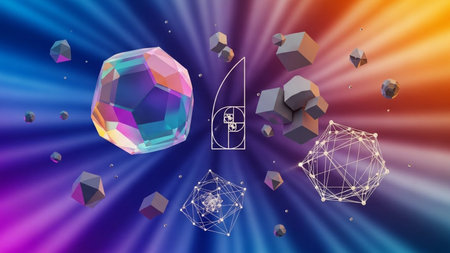 Geometric patterns and shapes based on the golden ratio, on a dark background. Generative AI