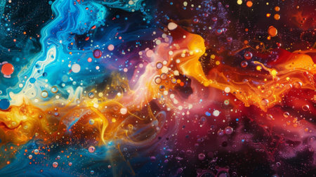 Colorful abstract paint splashes on black background. Digital art painting.