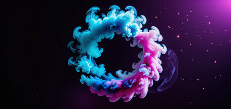 abstract ink swirl blue and pink forming a circle with copy space