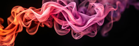 This mesmerizing image showcases colorful smoke waves gracefully dancing on a black background. Perfect for artistic projects, it evokes feelings of calm and creativity.