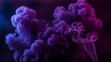 An artistic image of cigarette smoke in various shades of blue and purple, forming ethereal, wavy patterns against a contrasting background