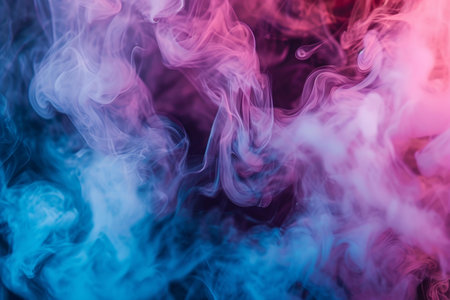 Colorful smoke swirls in shades of blue, pink and purple against a dark background. Mystical and vibrant effect
