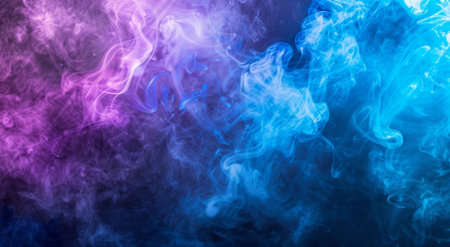 A vibrant blue and purple background with wisps of smoke billowing out, creating a dynamic and intriguing visual effect.