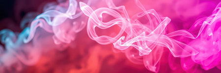 Colorful swirling smoke creates an abstract backdrop with vibrant tones of pink and purple in a dynamic display of movement