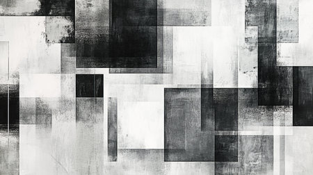 Seamless abstract geometric pattern of overlapping rectangles and squares in gray, black, and white