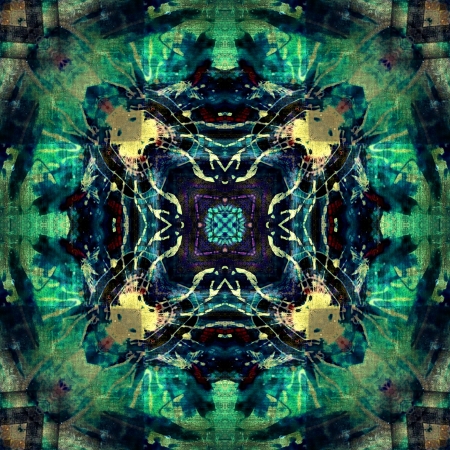 Green Ethnic pattern. Abstract kaleidoscope fabric design.
