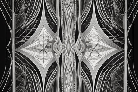 vertical symmetry, with mirrored lines and shapes down the center, created with generative ai
