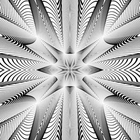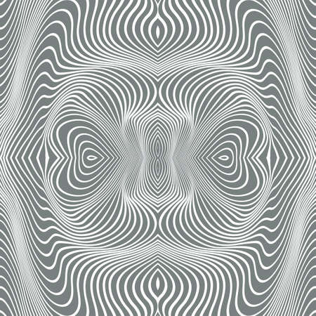 Abstract vector wave background made with linear Moire, op art effect surreal texture, sound and music waves theme, black and white grid abstraction.