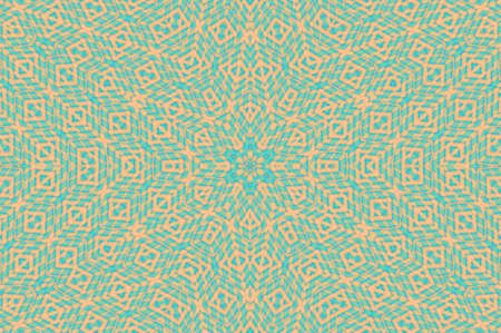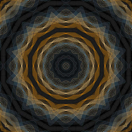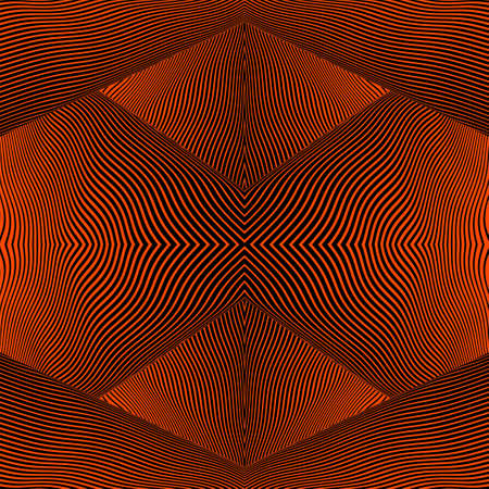 Calm geometric symmetrical ornate background in warm boho colors and optical illusion effect. Vector wavy linear blending graphics. For create project of web design, cover, carpet, pillow printing.