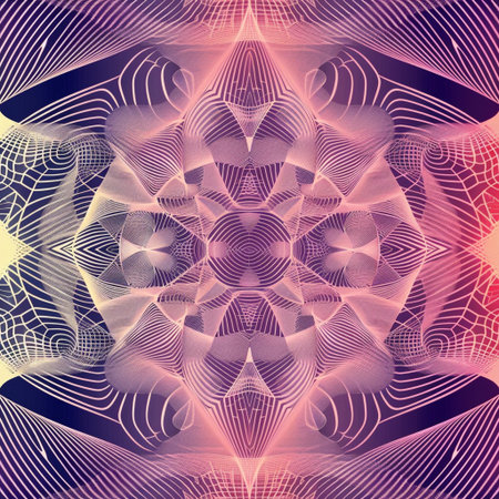Seamless abstract geometric pattern. Volumetric forms of many lines. Kaleidoscope of 3D images.
