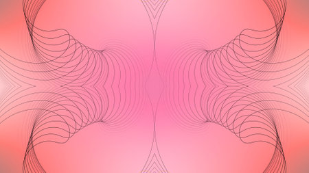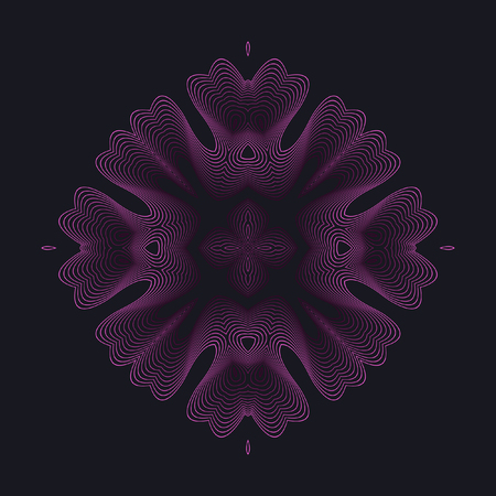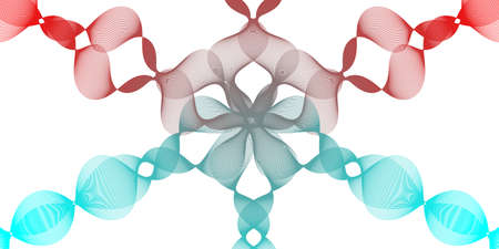 Light pink, violet, cyan guilloche pattern. Horizontal symmetric watermark. Line art design. Colored curves. Squiggle subtle lines. Vector abstract background. Template for passport, banknote, check, certificate, voucher. EPS10 illustration