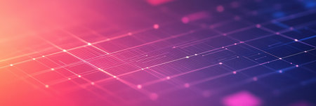 This abstract image showcases a futuristic technology network with glowing elements set against a vibrant background, perfect for innovative projects.