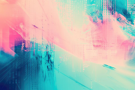 Abstract Digital Art with Pink and Blue Overlays and Data Code Imagery