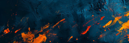 Abstract background of acrylic paint in blue, orange and yellow tones.