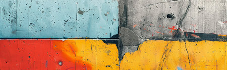 Abstract weathered plaster wall texture with colorful stains and cracks for creative design