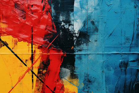 Blue, black, red and yellow shades colored wall texture background. Decorative art.