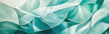 Translucent geometric patterns blend together in shades of teal and sea green, creating a serene and modern backdrop that conveys a sense of tranquility and sophistication.