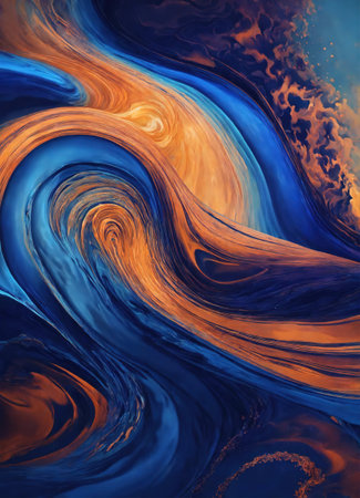 A vibrant abstract background featuring flowing waves of purple and orange hues. This digital art piece captures the energy and elegance of fluid designs, perfect for modern themes.