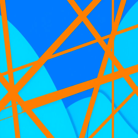 Sharp orange neon light lines intersect dynamically across a dark, textured background creating a vibrant...