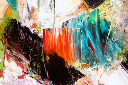 Conceptual abstract closeup of a painting by oil and palette knife on canvas. Oil painting in multicolored tones. The picture is painted in oil.