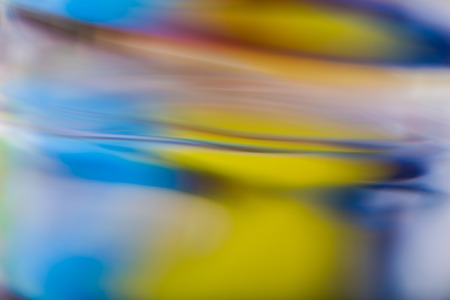 Abstract background of color reflections in thick glass vase. Macro abstract background