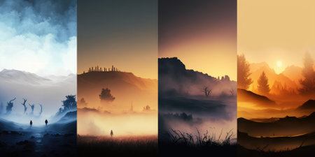 Generative AI : Different times of day dawn and sunset day and night Concept of continuous flow of time and unity and struggle of opposites Elements of this image furnished by NASA