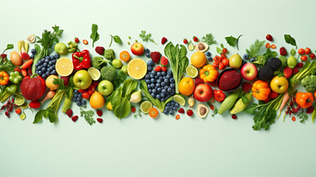 rainbow gradient made of various fruits and vegetables, created with generative ai