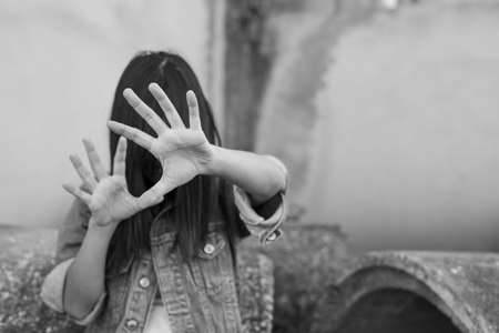 Women lift the palm,Stop violence and sexual abuse against women Stop Sexual abuse Concept, stop violence against Women, international women's day
