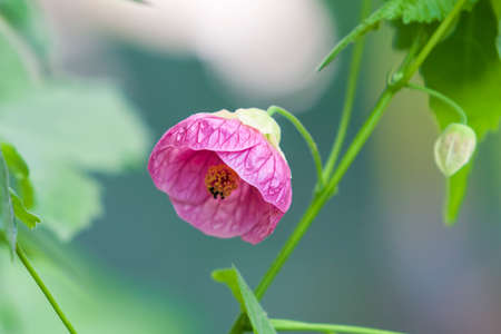 Close up of Country mallow flower in the garden. (Herb - Abutilon indicum)