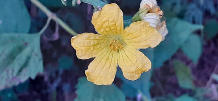 Luffa Plant Buds and Yellow Blossom