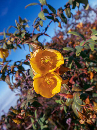 Yellow flowers of wild rose (Ceratonia grandiflora)