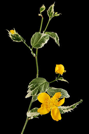 Yellow flower of kerria japonica, isolated on black background