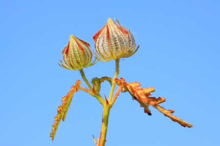 Hibiscus cannabinus also known as Kenaf against the blue sky background