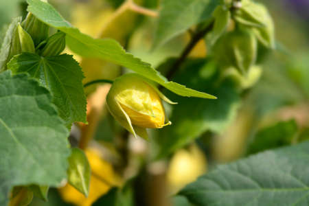Chinese lantern yellow flower bud - Latin name - Abutilon hybrids