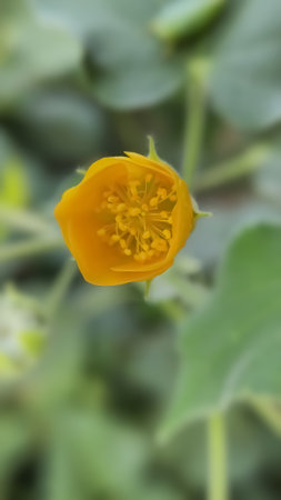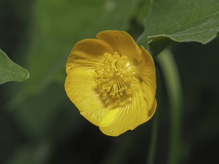 Yellow flower in the garden. (Scientific name: Caltha palustris)