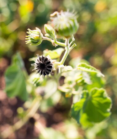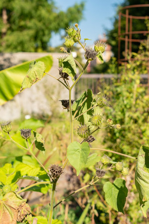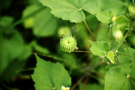Zurich, Switzerland, September 21, 2024 Abutilon Theophrasti or velvetleaf plant at the botanical garden
