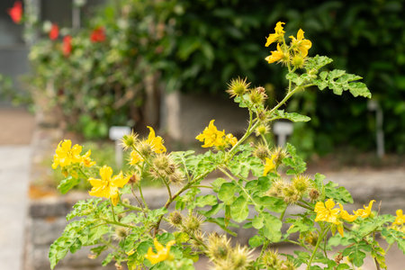 Saint Gallen, Switzerland, July 14, 2024 Solanum Rostratum or buffalobur nightshade plant at the botanical garden