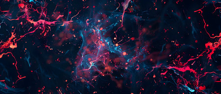 This striking image depicts a captivating abstract energy explosion within a cosmic nebula Swirling fiery hues of red blue and purple create a mesmerizing and dynamic visual composition evoking a