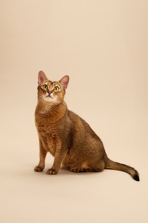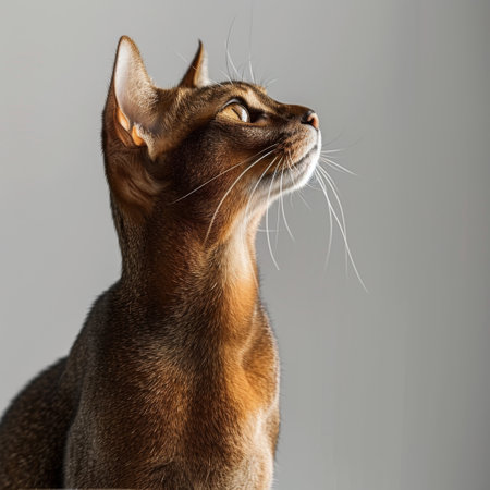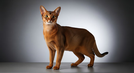 Captivating Abyssinian Cat Looking Playful and Curious Against a Soft Gray Background in Studio