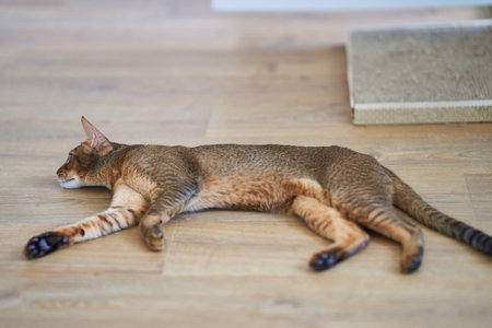 The Beautiful Abyssinian Cat Lays at Home