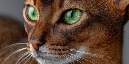 Stunning Portrait of an Abyssinian Cat with Striking Green Eyes, Exuding Elegance and Charm