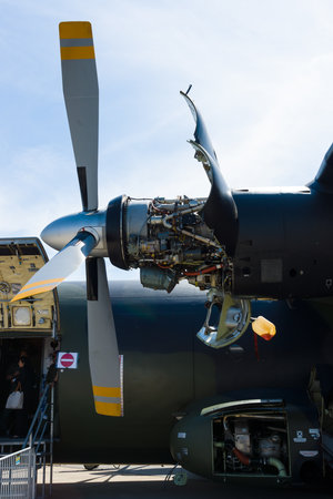 BERLIN - SEPTEMBER 14: Engine a medium-sized military transport aircraft Alenia C-27J Spartan, International Aerospace Exhibition ILA Berlin Air Show, September 14, 2012 in Berlin, Germany