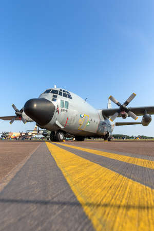 RAF Fairford, Gloucestershire, UK - July 12, 2014: Belgian Air Component (Belgian Air Force) Lockheed C-130H Hercules military cargo aircraft CH-11.
