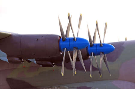 Close up view of a military transport airplane engine
