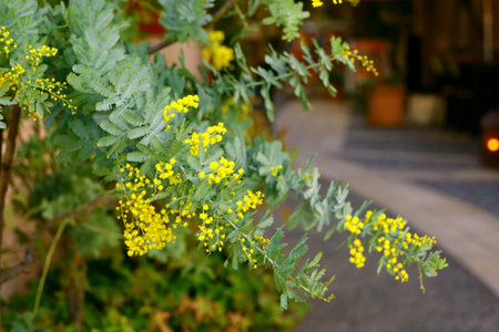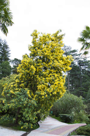 Mimosa blooming beautifully in the garden.